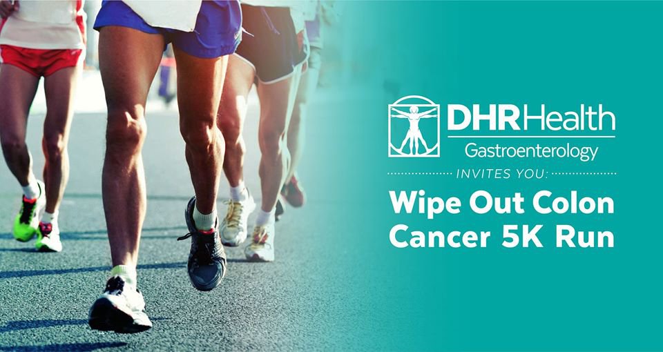 Save the date! DHR Health's Inaugural Wipe Out Colon Cancer 5K is set for March 28, 2020 in honor of Colon Cancer Awareness Month.